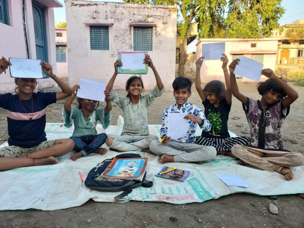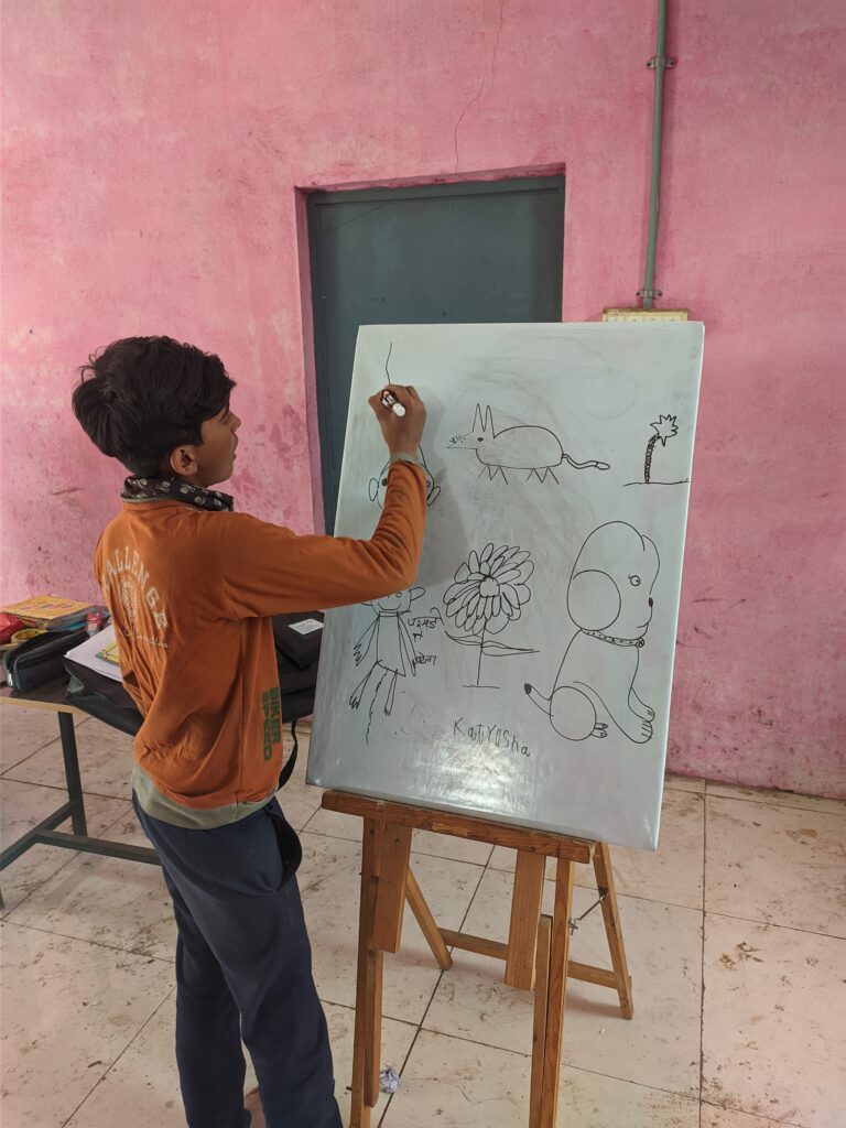 Here in this tiny village of Shukrawasa, far away from all the magnets and miracles of the surrounding cities, untouched by the hustle-bustle of the educated life, bereft of teachers and good schools, children are yet filled with immense energy and aspiration for creation. With every stroke they make on the canvas or drawing sheet, they experience freedom; the more they experience freedom, the more they spread love and collectivity.